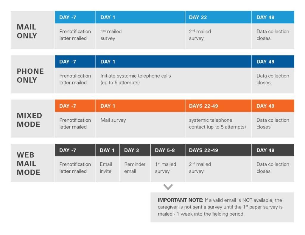 Along with the other changes coming in 2025, a new option for survey administration is available to invite caregivers to complete the survey online before a follow-up paper survey is mailed. This will hopefully provide a more convenient way for caregivers to complete the survey and potentially increase response rates.